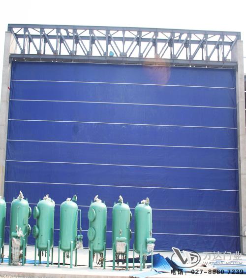 柔性大门是垂直折叠提升的安定电动门,尺寸可依据具体门洞制作,可以拥有独立自我支撑结构,其门板材质为双层聚纤维基布,内嵌突出的钢制圆管抗风条承载基布与强大的风压。